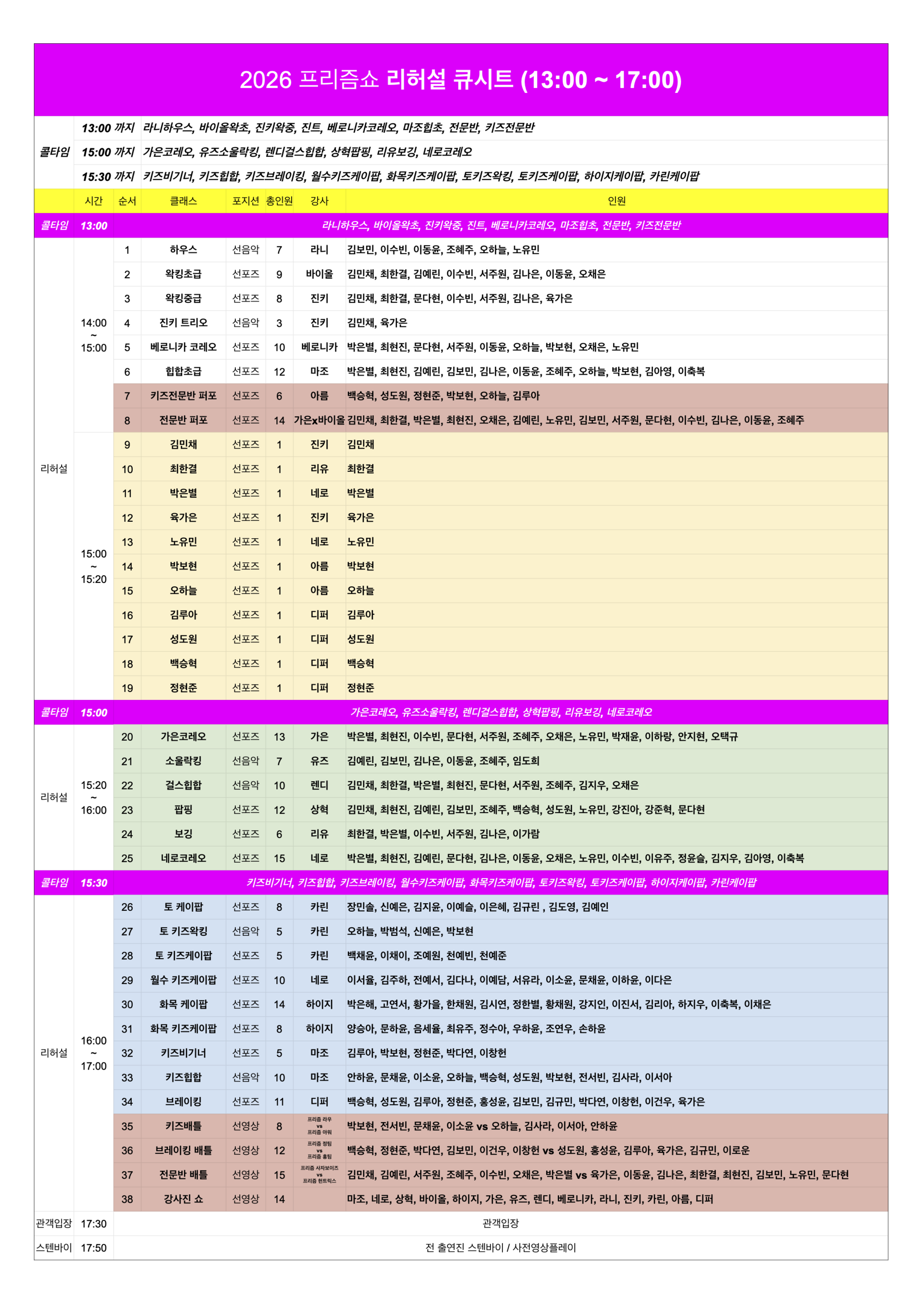- 13:00 - 팀별 리허설 준비 및 셋팅