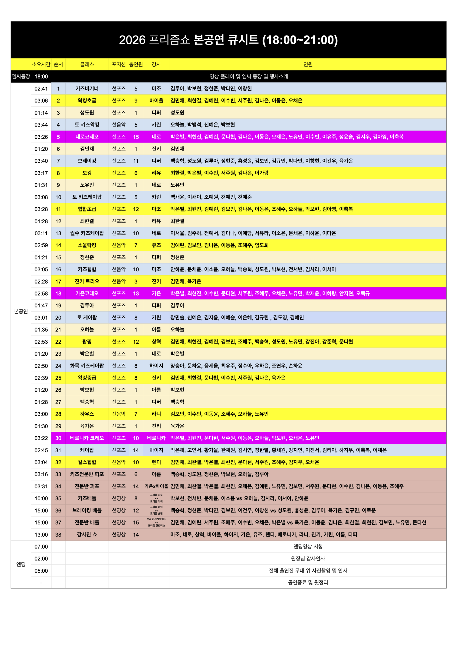 - 리허설 큐시트, 본공연 큐시트 더블체크 및 순서 체크